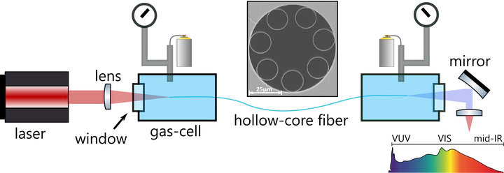 Investigating extreme light–matter interactions in hollow-core fibers is crucial for advancing ultrafast nonlinear optics. By confining intense laser pulses within gas- or plasma-filled microstructures, these fibers provide a unique platform to explore phenomena such as soliton dynamics and strong-field ionization under precisely controlled conditions. The main goals of this project are to unveil new regimes of nonlinear light propagation, develop compact sources of coherent radiation from the ultraviolet to mid-infrared, and enable next-generation applications in attosecond science, quantum technologies, and high-field spectroscopy.